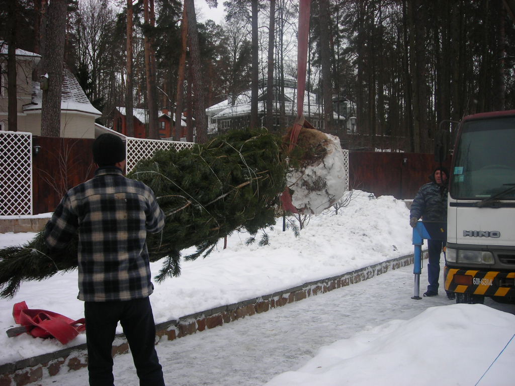 Посадка крупномеров (больших деревьев)