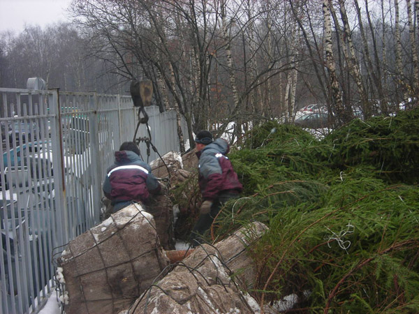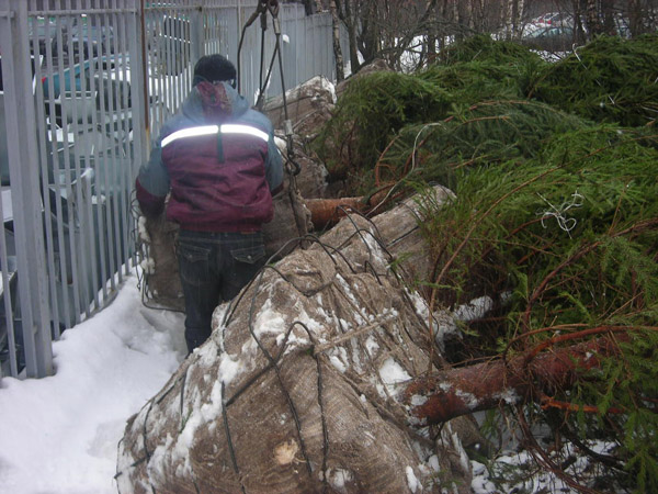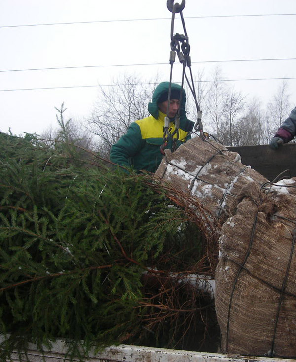 Посадка крупномеров (больших деревьев)